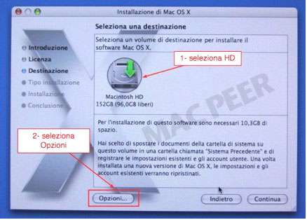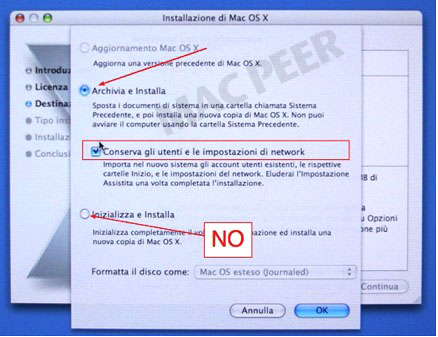 operativo utilizzando l'opzione "Archivia e Installa"(fino a MAC OS 10.5)