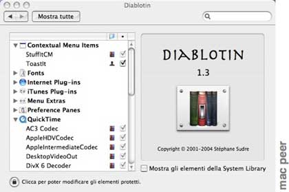 Che cosa fa? Ci permette di gestire ogni elemento aggiunto alla nostra libreria che non sia di base al sistema operativo, ci da la possibilità di disabilitarlo o attivarlo a piacere (una funzione anologa a gestione estensioni del OS 9 per chi si ricorda)