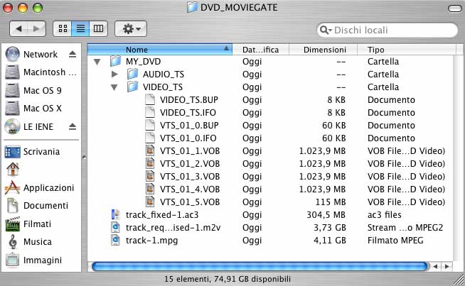 precedentemente scelta/creata (nel nostro caso la cartella "DVD_MOVIEGATE")