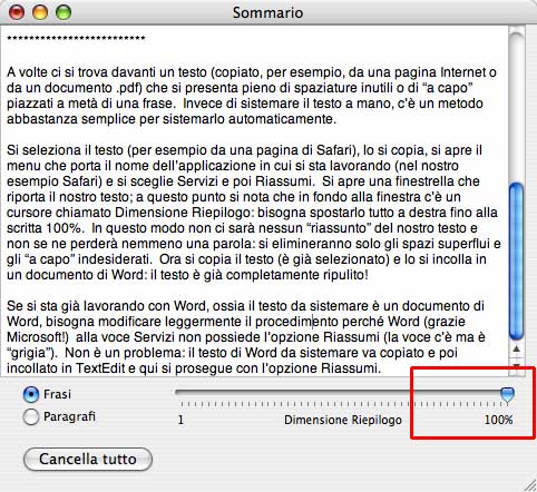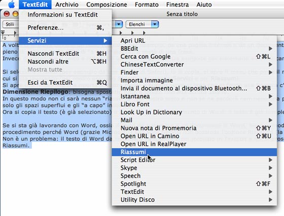TextEdit e qui si prosegue con l’opzione Riassumi.