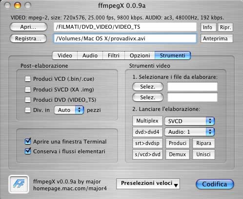 anche farlo all'inizio, al primo passo, una volta aperto ffmpegX e dopo