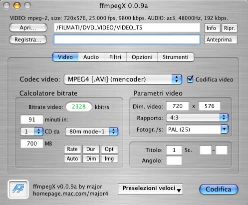 con ffmpegX (Mac OSX 10.3)